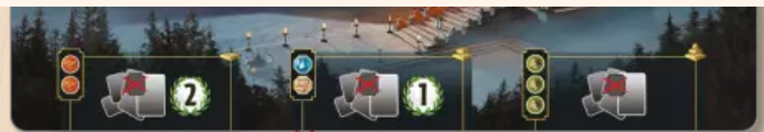 카드 중에는 연계카드도 존재하는데, 해당 마크가 있는 카드를 건설하면, 또 다른 해당 마크의 카드는 자원 없이 건설이 가능하다.