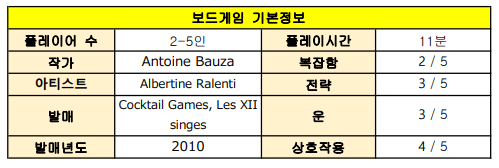 플레이 시간도 적절하고, 게임 룰 자체가 간단해서 쉽게 보이겠지만, 앞서 말했듯 의외로 정말 어려운 게임이다.